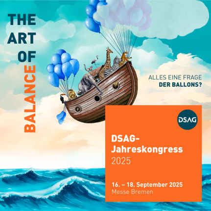 Merken Sie sich den Termin vor: Vom 16. bis 18. September 2025 finden Sie uns auf dem DSAG-Jahreskongress 2025 im Messe und Congress Centrum Bremen.